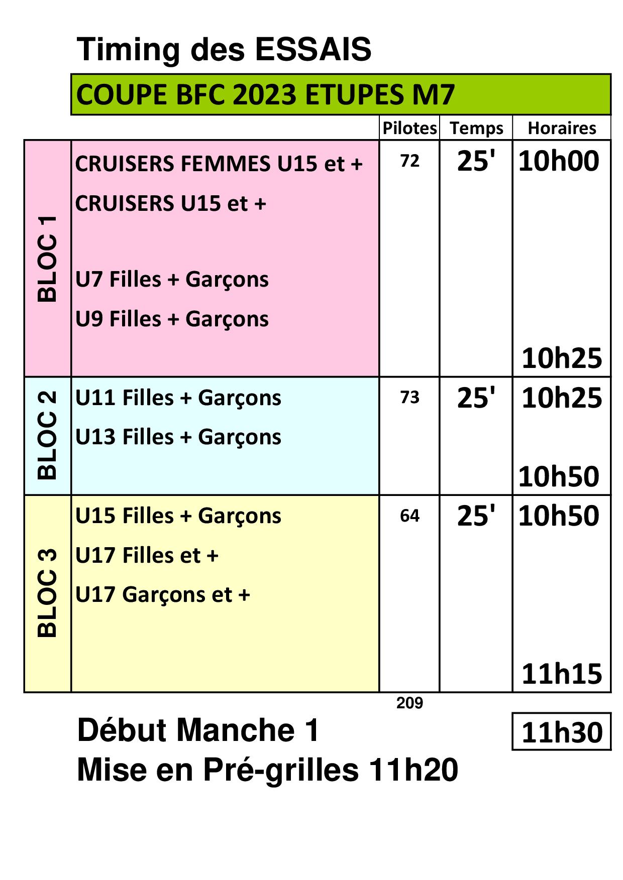 Le timing de la 7ème manche de la coupe BFC se tenant à Etupes le 15 octobre est disponible sur le lien suivant :